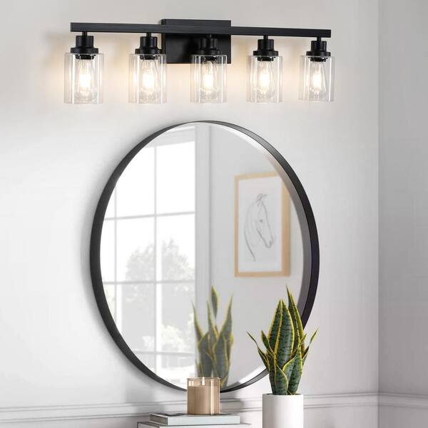 31.1 in. 5 Light Farmhouse Black Bathroom Vanity Light with Clean Glass Shade