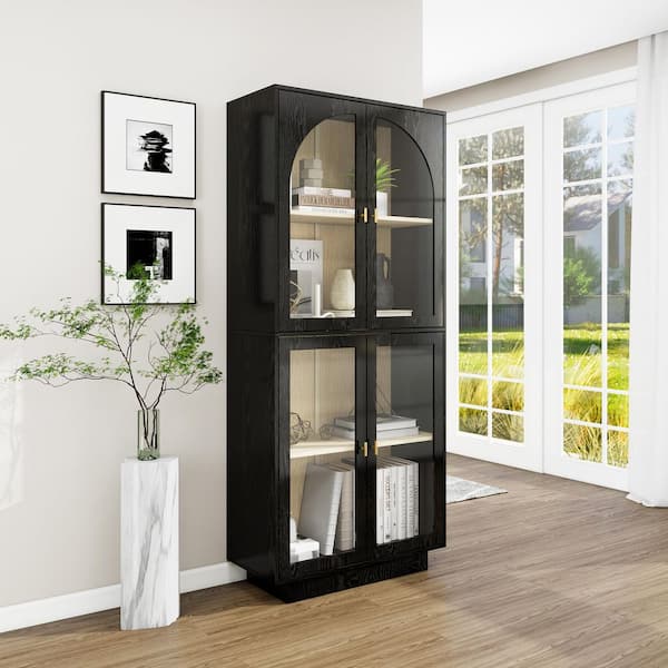 31.1 in. W x 13.78 in. D x 71.02 in. H Black Linen Cabinet with 4 Doors and 2 Shelves for Bathroom, Kitchen