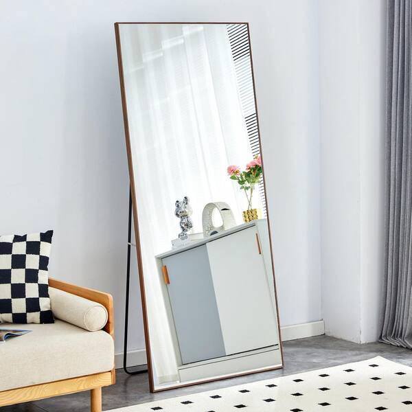 31.4 in. W x 71 in. H Rectangle Solid Wood Frame Dressing Mirror in Brown