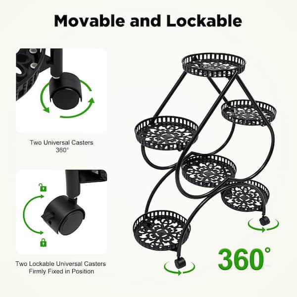 31.49 in. Tall Indoor/Outdoor Black Metal Iron Plant Stand Heart-Shape (4-Tiered)