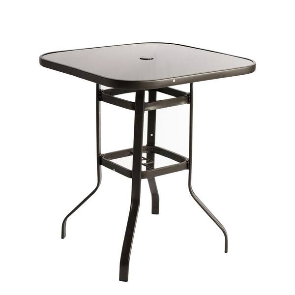 31.5 in. Metal Outdoor Umbrella Tempered Glass Dining Table