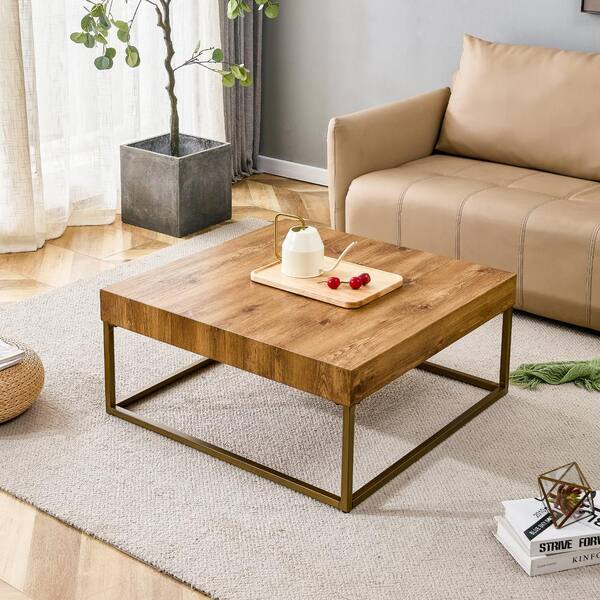 31.5 in. Modern Brown Square Wood-Top Coffee Table with Metal Legs, Suitable for Restaurants and Living Rooms