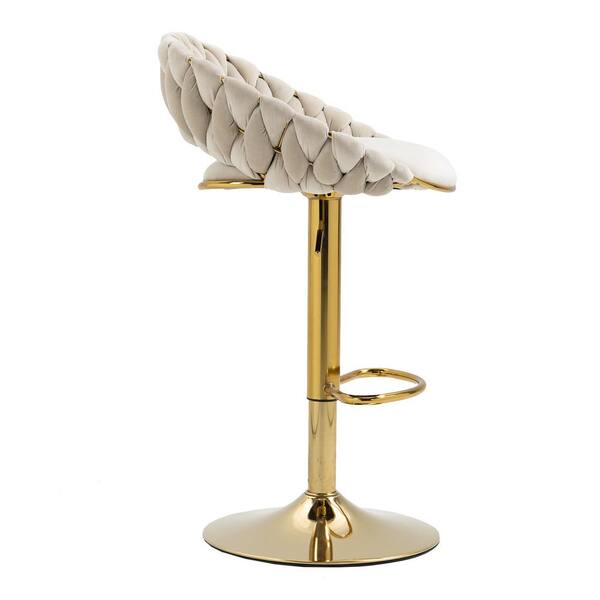 31.5 in. Modern Ivory Velvet Metal Frame Low Back Swivel Adjustable Counter Bar Stools (Set of 2)