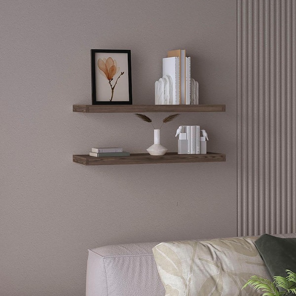 31.5 in. W x 10 in. D Brown Particle Board Floating Decorative Wall Shelf for Wall Decor (2-Pack)