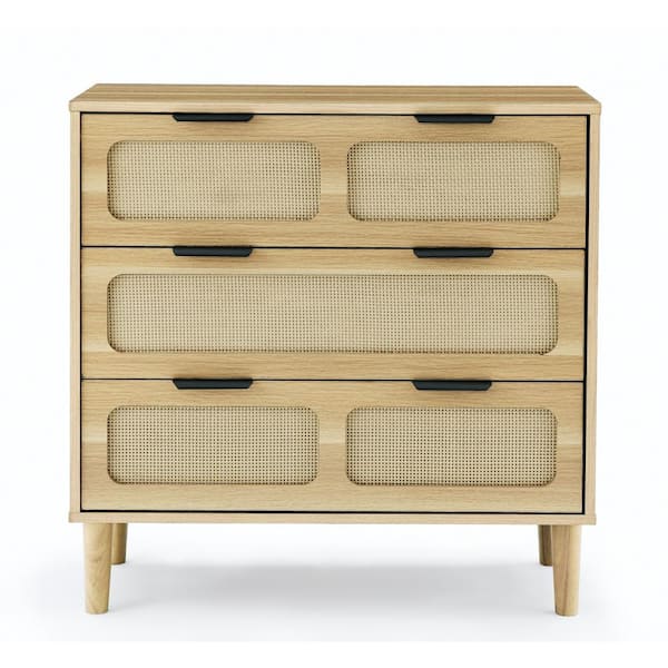 31.5 in. W x 13.78 in. D x 31.3 in. H Brown Natural Linen Cabinet with wide drawers and metal handles