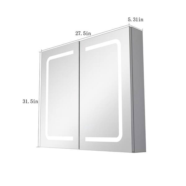 31.5 in. W x 27.5 in. H Rectangular Aluminum Bathroom Medicine Cabinet with Mirror and LED Lights in Transparent