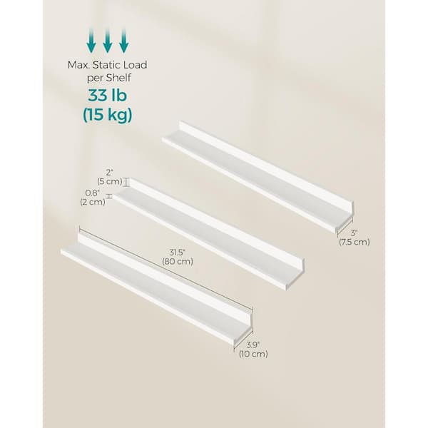 31.5 in. W x 3.9 in. D White Decorative Wall Shelf, Floating Shelves, Set of 3