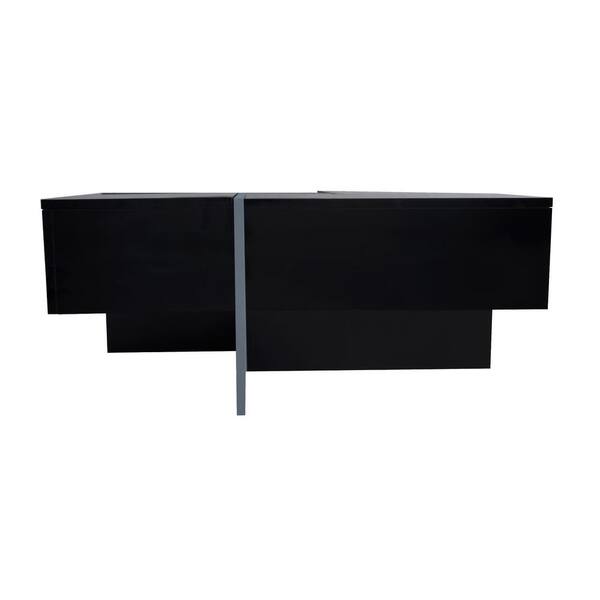31.5 in. W x 31.5 in. D x 13.8 in. H Black Linen Cabinet with Extendable Square Cocktail Table and 4 Drawers
