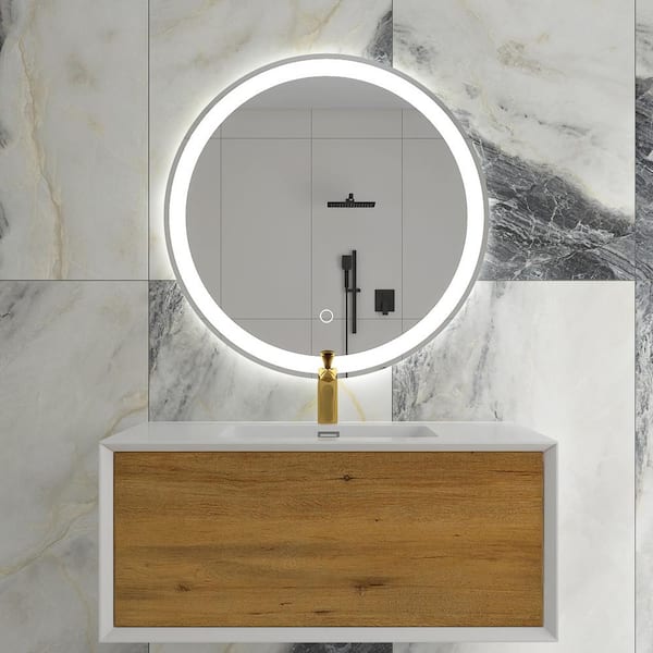 31.5 in. W x 31.5 in. H Round Frameless Wall-Mount Anti-Fog Bathroom Vanity Mirror