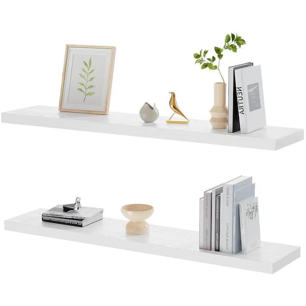 31.5 in. W x 6.7 in. D White Wood Decorative Wall Shelf, (Set of 2)
