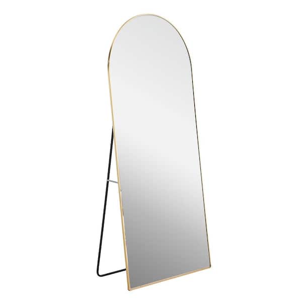 31.5 in. W x 71 in. H Metal Framed Arched Floor Standing Full-length Mirror with Bracket in Gold