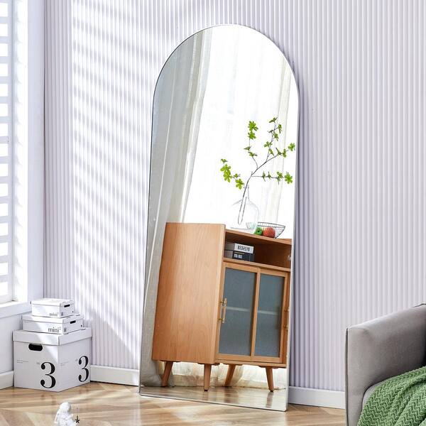 31.5 in. W x 71 in. H Metal Framed Arched Floor Standing Full-length Mirror with Bracket in Silver