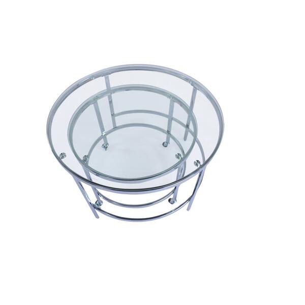 31.5 in. White Standard Round Marble Coffee Table with 2-Tier Tabletop and Metal Leg