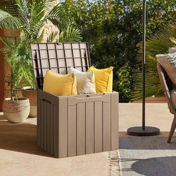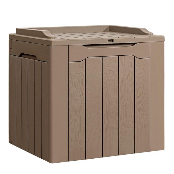 31 Gal. Light Brown Waterproof Resin Deck Box with Lockable Lid