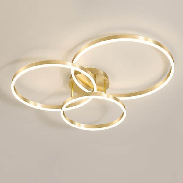 31 in. 3-Light Gold Dimmable LED Semi-Flush Mount with Acrylic Shade