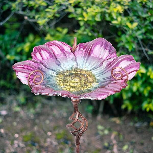 31 in. H x 11 in. Dia Pink Glass Birdbath with Metal Stake