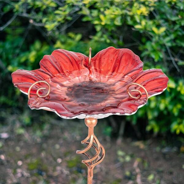 31 in. H x 11 in. Dia Red Glass Birdbath with Metal Stake