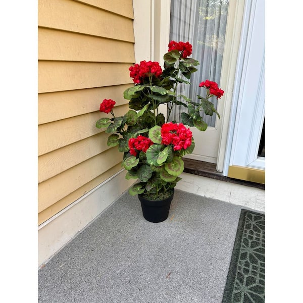 31 in Large Red Artificial Geranium in 7 in Pot with Moss