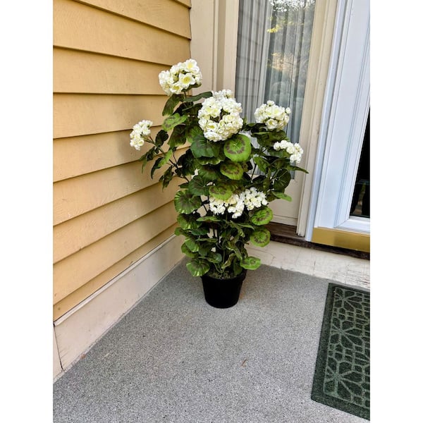 31 in Large White Artificial Geranium in 7 in Pot with Moss