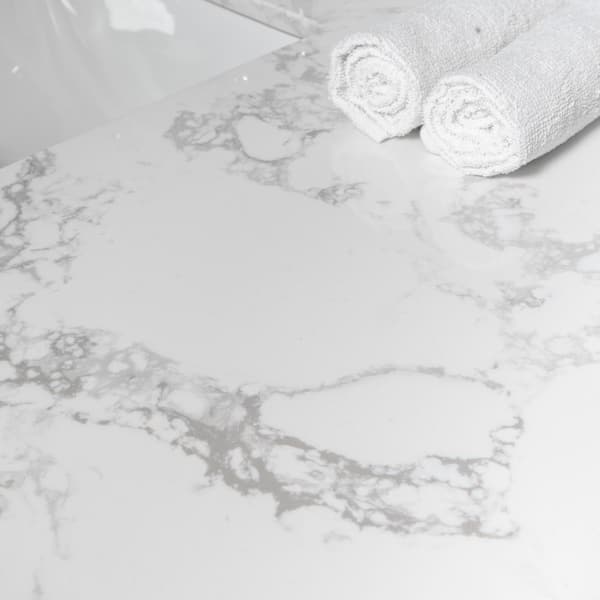 31 in. W. x 22 in. D Engineered Stone White Rectangular Single Sink Bathroom Vanity Top in Carrara White