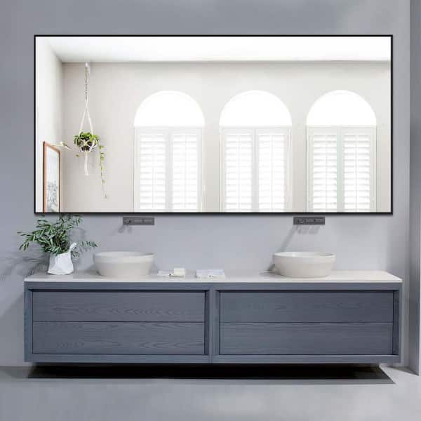 31 in. W x 71 in. H Large Rectangular Steel Framed Dimmable Wall Bathroom Vanity Mirror in Black
