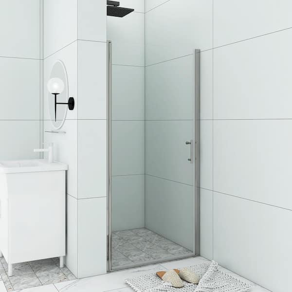 31 in. W x 72 in. H Pivot Semi-Frameless Shower Door in Chrome with Clear Tempered Glass