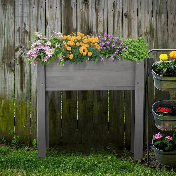 31 in. x 31 in. Gray Wood Raised Garden Bed with Legs Elevated Wooden Planter Box for Outdoor Plants Flowers