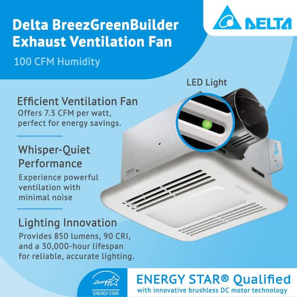 100 CFM Ceiling Bathroom Exhaust Fan with Dimmable LED Light, ENERGY STAR