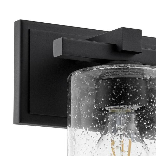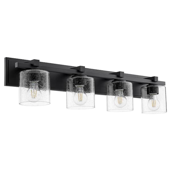 Kaplan, 33 in. W 4-Lights, Textured Black Fixture Color Finish Vanity Light with Seeded Glass Shades