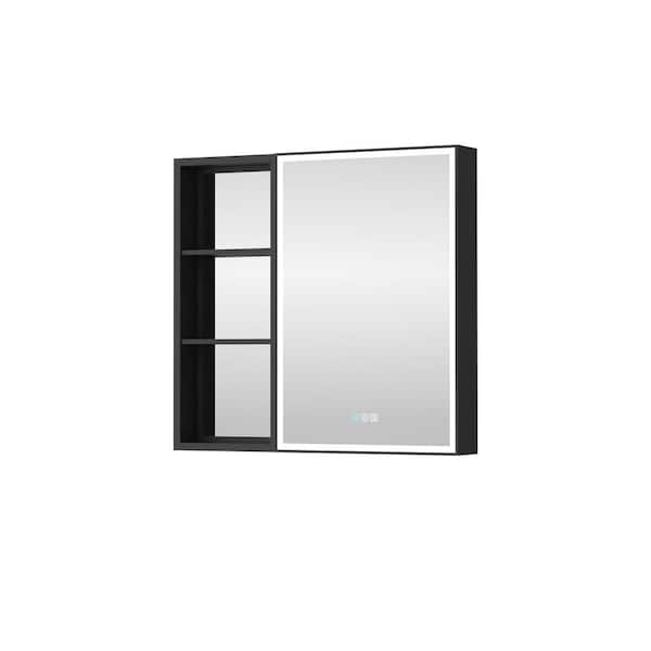 32.01 in. W x 30 in. H Rectangular Black Aluminum Recessed/Surface Mount LED Medicine Cabinet with Mirror, Right Hinge