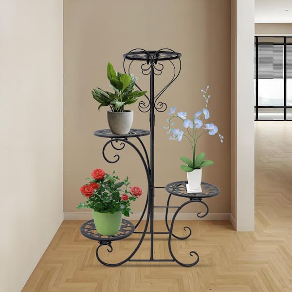 32.3 in. Tall Indoor/Outdoor Black Metal Plant Stand (4-Tiered)