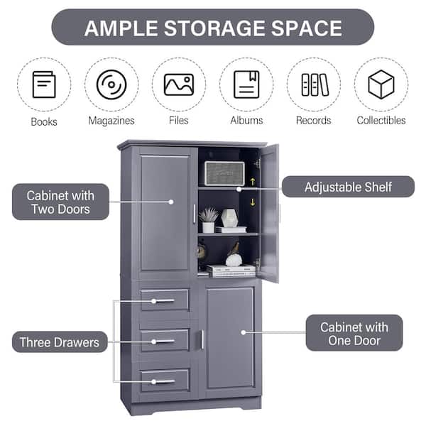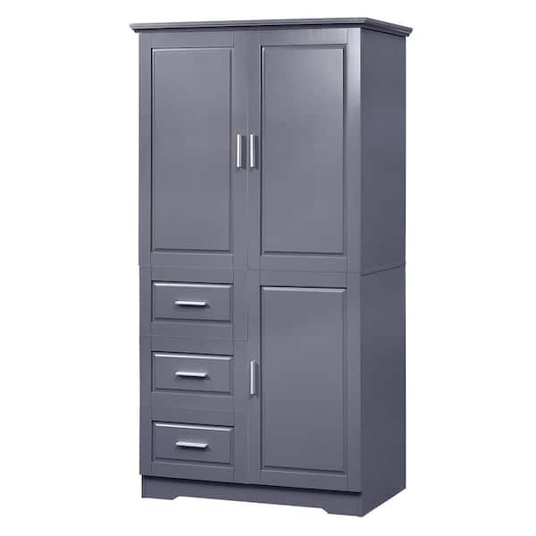 32.6 in. W x 19.6 in. D x 62.2 in. H Bathroom Storage Wall Cabinet in Grey with 3-Drawers