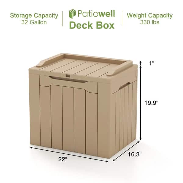 32 Gal. Wood-Grain Deck Box with Seat, Outdoor Lockable Storage Box for Patio Furniture in Light Brown (2-Pack)