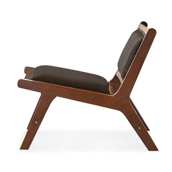 32 in. Black/Brown Tufted Upholstered Leather Ergonomic Side Chair with Riveted Walnut Frame (Set of 2)
