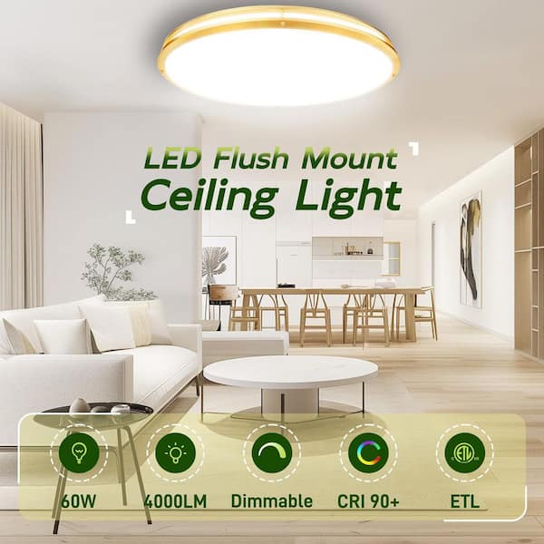 32 in. Gold Integrated LED Ceiling Light Fixture Flush Mount Dimmable Lighting