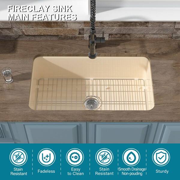 32 in. L x 19 in. W Rectangular Fireclay Single Bowl Undermount/Drop-In Kitchen Sink in Bone with Basket Strainer Grid