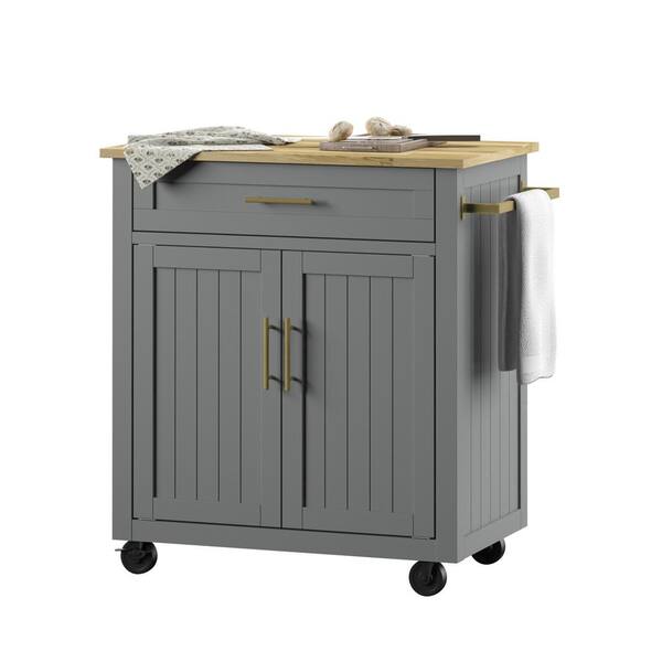 32 in. Pure Gray Kitchen Cart with Panel Doors and Drawer