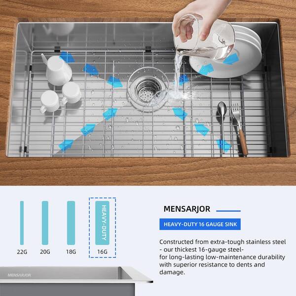 • 32 in. x 19 in. single bowl, 10 in. depth