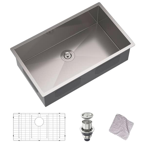 32 in. Undermount Single Bowl 16-Gauge Stainless Steel Kitchen Sink with Drain and Bottom Grid