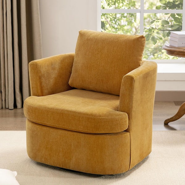 32 in. W Mustard Chenille Swivel Accent Barrel Chair Upholstered Armchair Comfy Sofa Chair 360°Club Chair