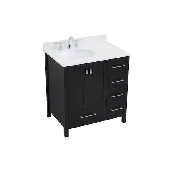 32 in. W Single Bath Vanity in Black with Engineered Stone Vanity Top in Calacatta with White Basin with Backsplash