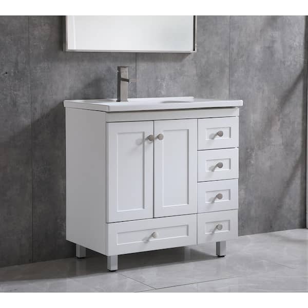 32 in. W x 18 in. D x 32 in. Single Sink Free-Standing Bathroom Vanity in White with White Ceramic Top
