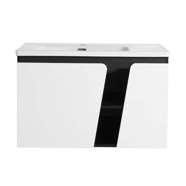 32 in. W x 19.9 in. D x 20.06 in. H Single Sink Floating Bathroom Vanity in White Plus Black with White Ceramic Top