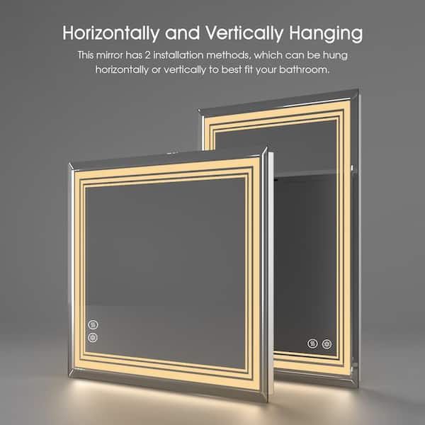 32 in. W x 24 in. H LED Front Light Warm Color Rectangular Aluminum Frameless Wall Bathroom Vanity Mirror in Clear