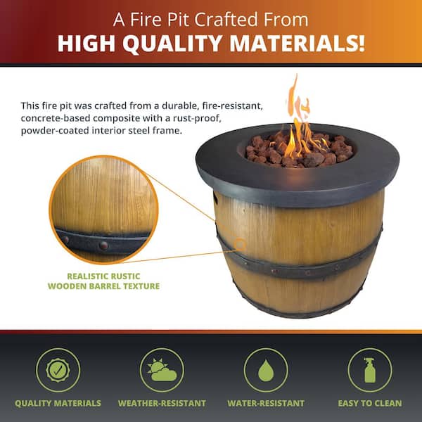 32 in. W x 24 in. H Propane Barrel Fire Pit Table for Patio 40000 BTU CSA Certified Firepit with Concrete Frame in Brown