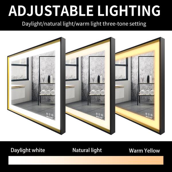 32 in. W x 24 in. H Rectangular Aluminum Framed Anti-Fog Dimmable Wall Bathroom Vanity Mirror in Black Gold