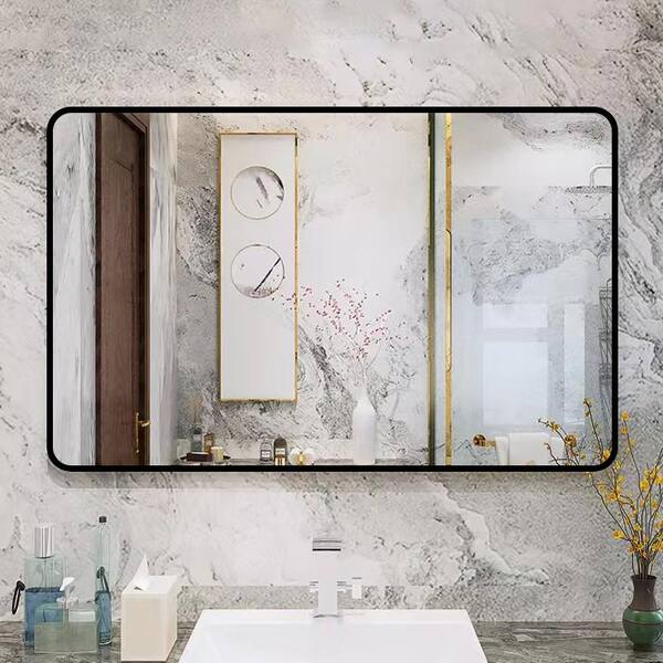 32 in. W x 24 in. H Rectangular Framed Wall Bathroom Vanity Mirror in Black