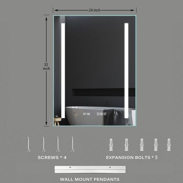 32 in. W x 24 in. H Rectangular Frameless Anti-Fog Wall-Mounted Bathroom Vanity Mirror in Silver