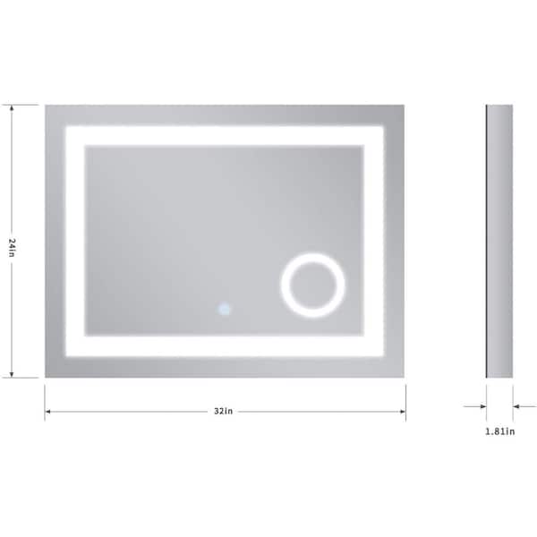 32 in. W x 24 in. H Rectangular Frameless with Anti-Fog Dimmable LED Makeup Mirror Wall Bathroom Vanity Mirror in Silver