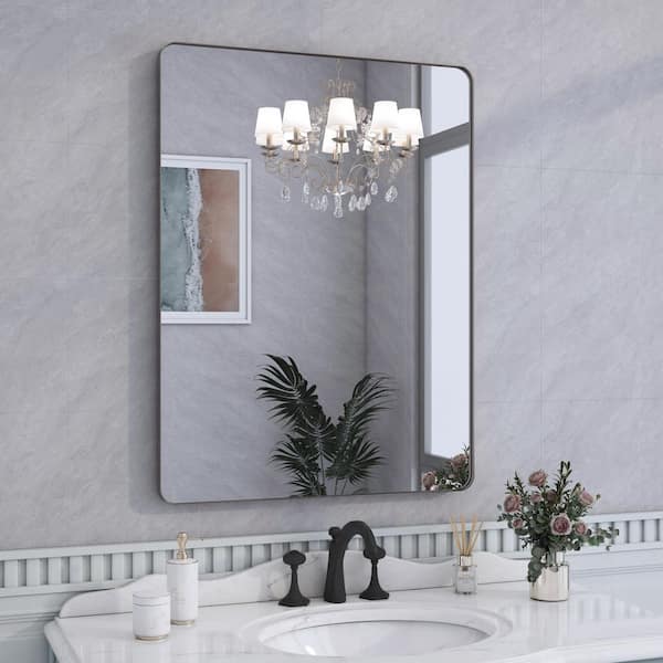 32 in. W x 24 in. H Small Rectangular Framed Wall Mounted Bathroom Vanity Mirror in Nickel